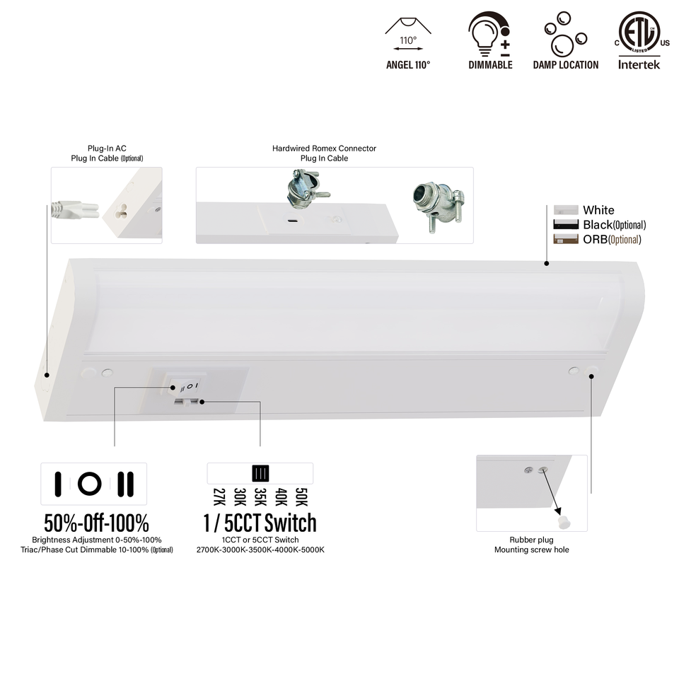 2700K (suave blanco cálido), 3500K (blanco), 5000K (luz del día), 3000K, 4000KTemperatura del color(CCT)