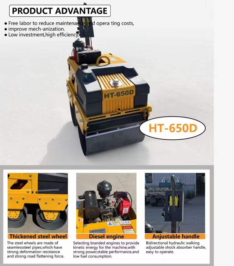 Mini rodillo de carretera de alta eficiencia, máquina compactadora de rodillos de asfalto de doble rueda de alta calidad, rodillo de tambor Doble