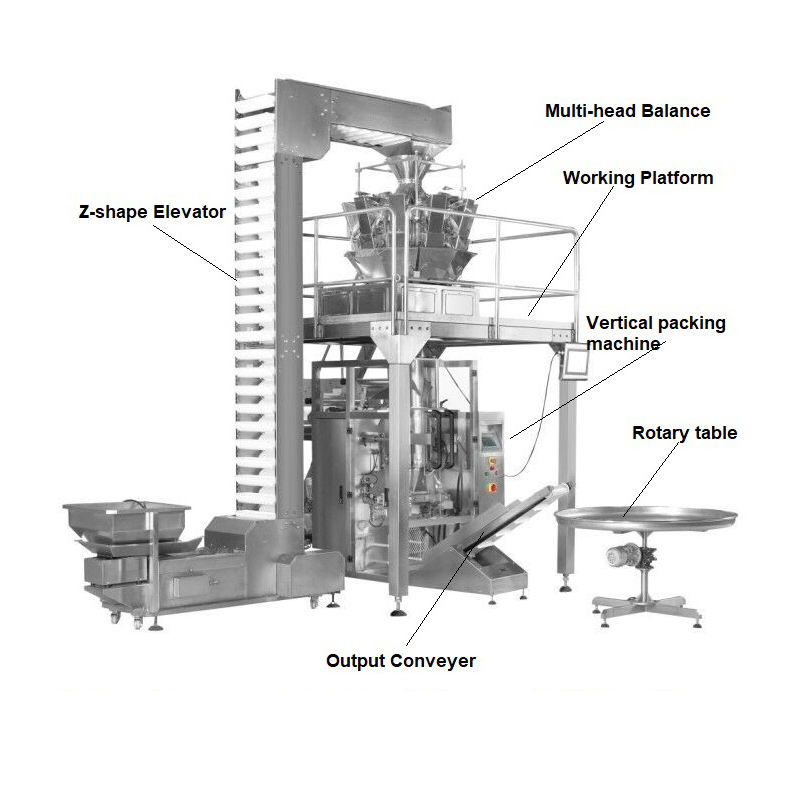 Pesadora multicabezal de alta eficiencia con máquina de llenado de bolsas de gránulos verticales para embalaje de semillas de aperitivos de frijoles de arroz