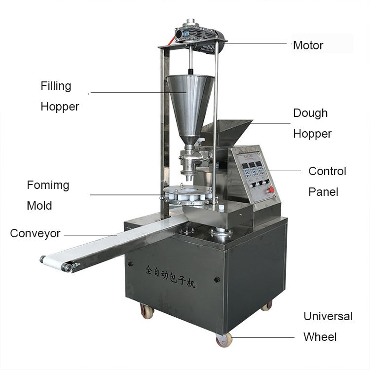 Función:Bollo de pan automático cochado al vapor relleno que hace la máquina para pequeño