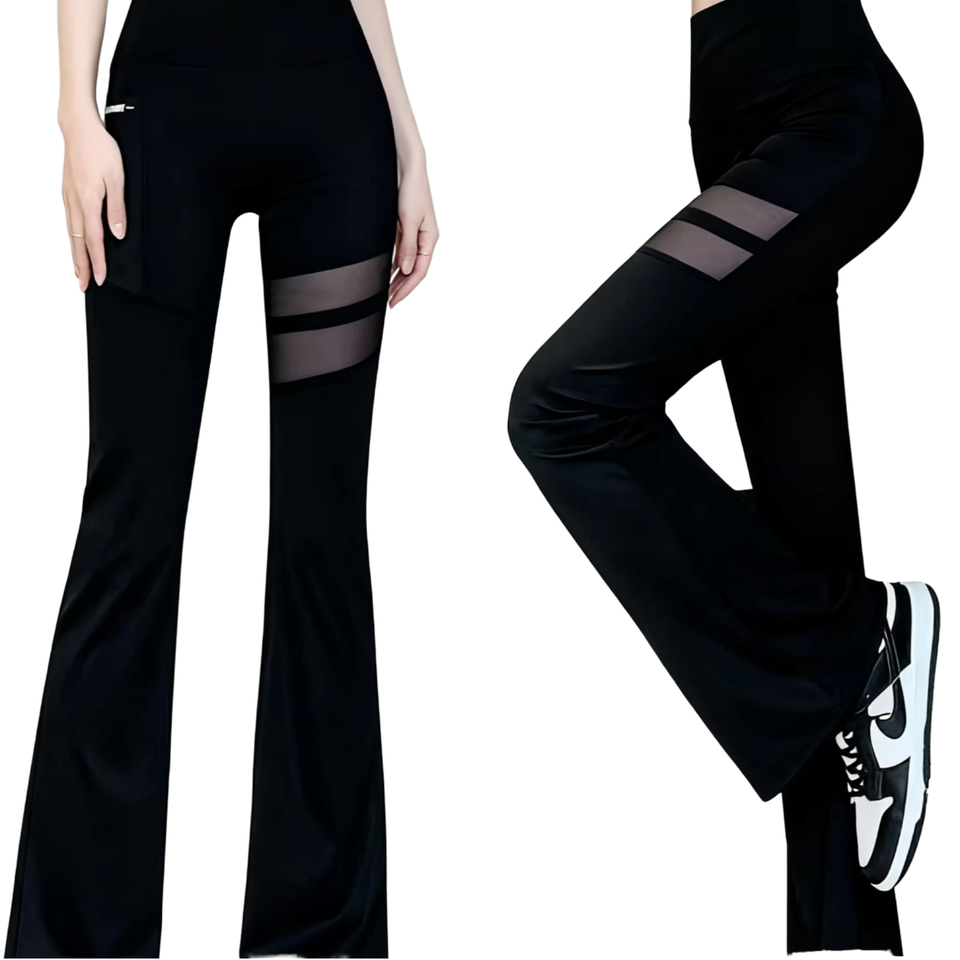 Pantalones de microfibra elástica de cintura alta, transpirables, antiarrugas, de nailon/spandex, acampanados, que estilizan la cadera y el abdomen, elásticos, talla grande.