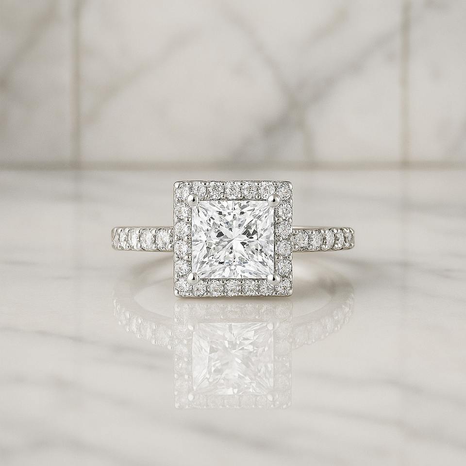 Anillo de compromiso de diamante cultivado en laboratorio de plata dorada de 10K de gama alta 1 quilate corte princesa VVS2 E Color IGI proveedor ético certificado