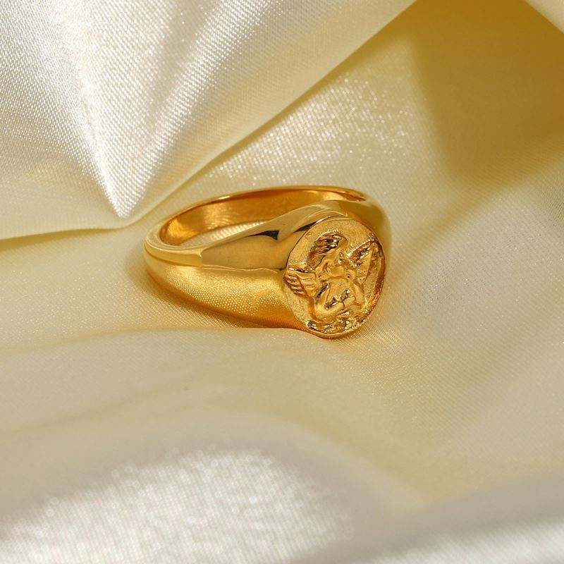 High End 18K PVD impermeable chapado en oro Ángel anillos de acero inoxidable joyería de oro al por mayor