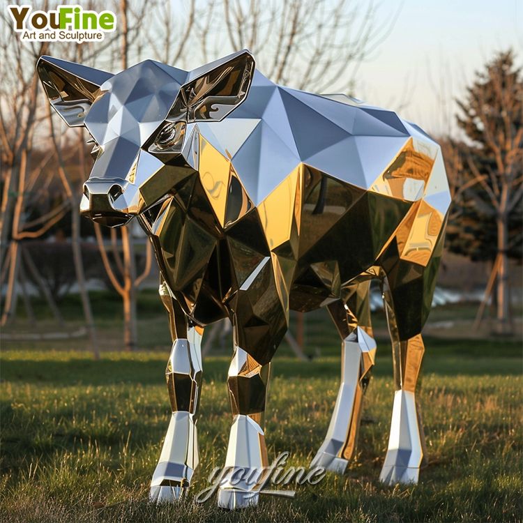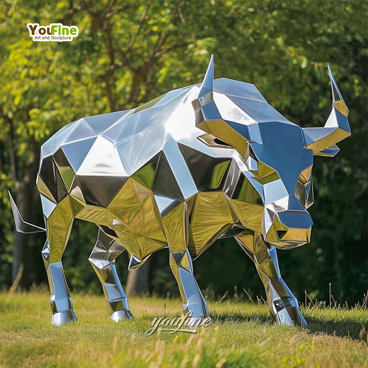 Estatuas de toro de acero inoxidable de metal con diseño de arte abstracto de gama alta