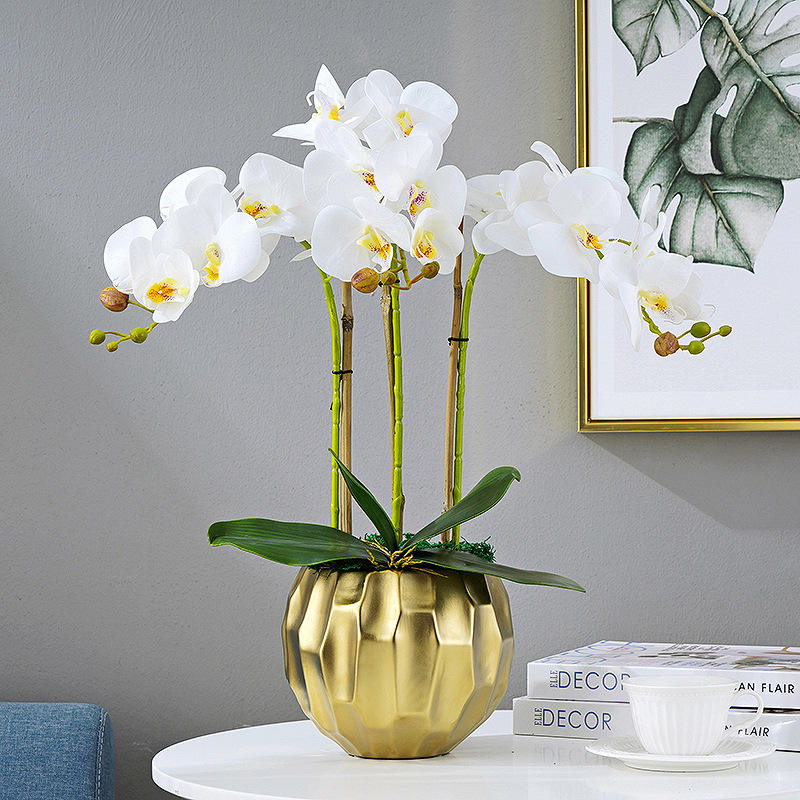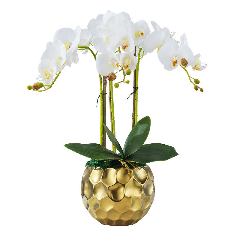 Orquídea Artificial de Alta Gama con Maceta Dorada para Decoración de Hogar, Hotel, Jardín, Sala de Exposiciones y Tienda, Orquídea con Tacto Realista
