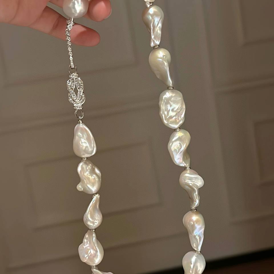 Collar de Perlas de Agua Dulce Barrocas de Alta Gama, Cadena Irregular para Clavícula con Estilo Retro de Lujo, Belleza Natural