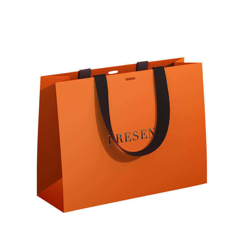 Bolsas de Papel Negras de Alta Gama para Compras, Impresión de Logotipo en Dorado Personalizado, Embalaje Promocional para Regalos, Venta al por Mayor