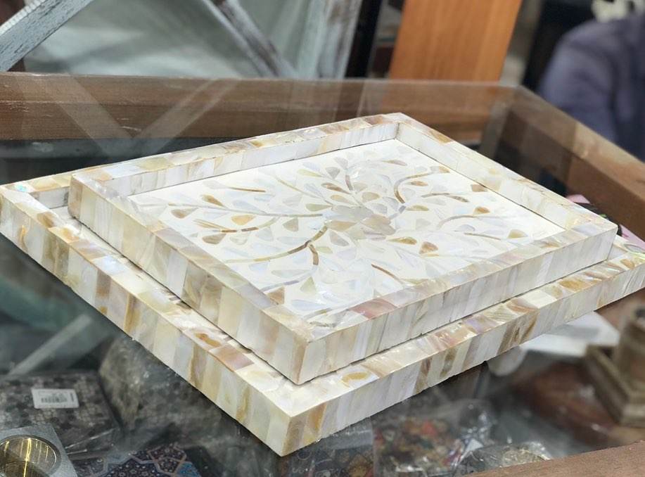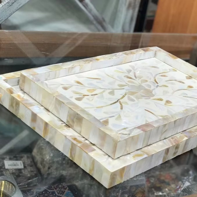 Juego de bandejas con incrustaciones de hueso de gama alta, organizador decorativo elegante de nácar para hoteles, hogares, ideal para decoración del hogar, bodas
