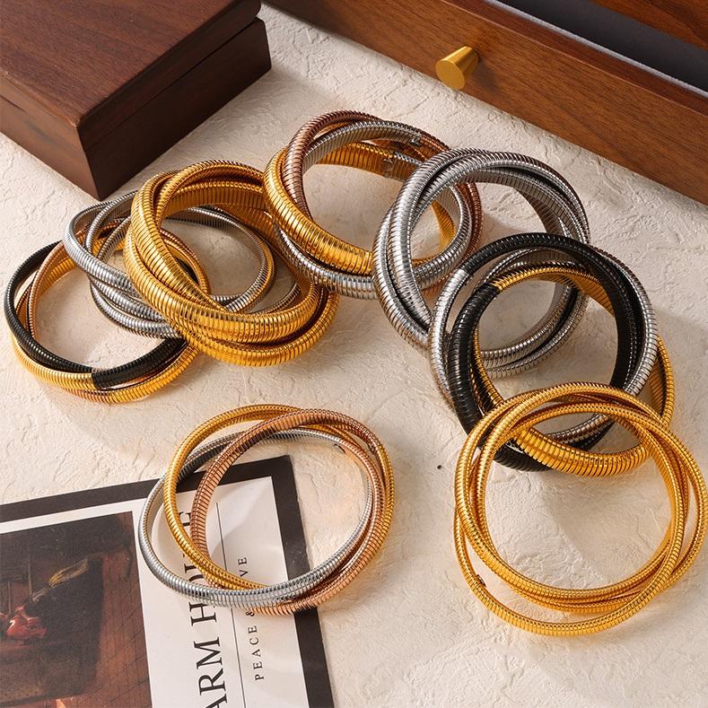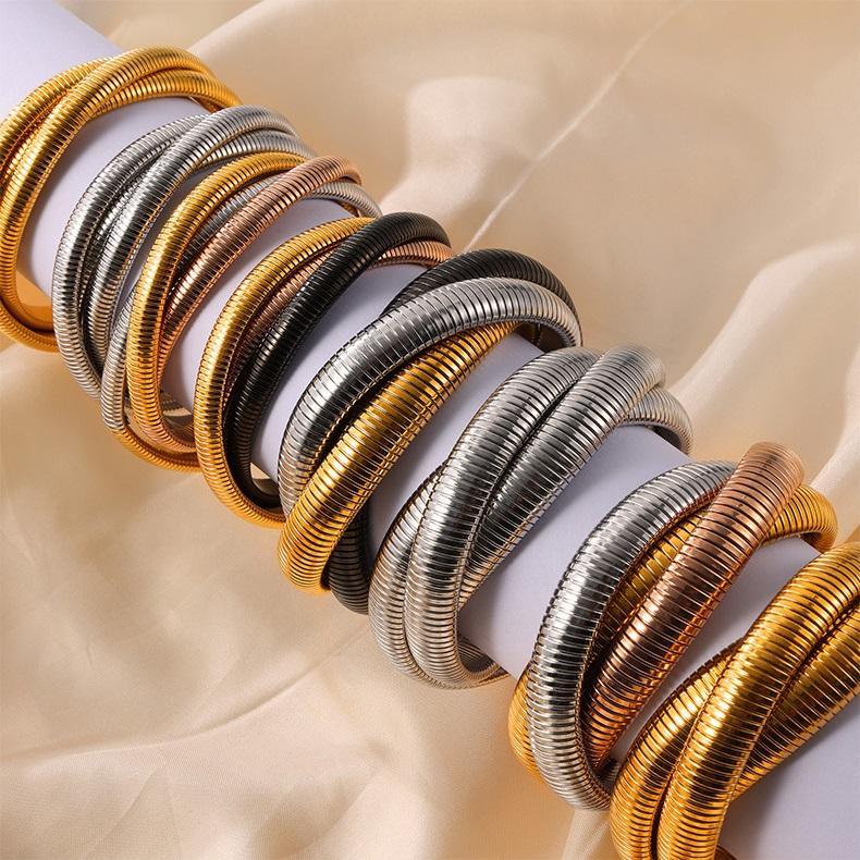 Pulsera Elástica de Cadena Gruesa de Alta Gama, Chapada en Oro, de Acero Inoxidable, Pulsera Triple Entrelazada