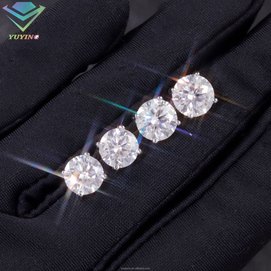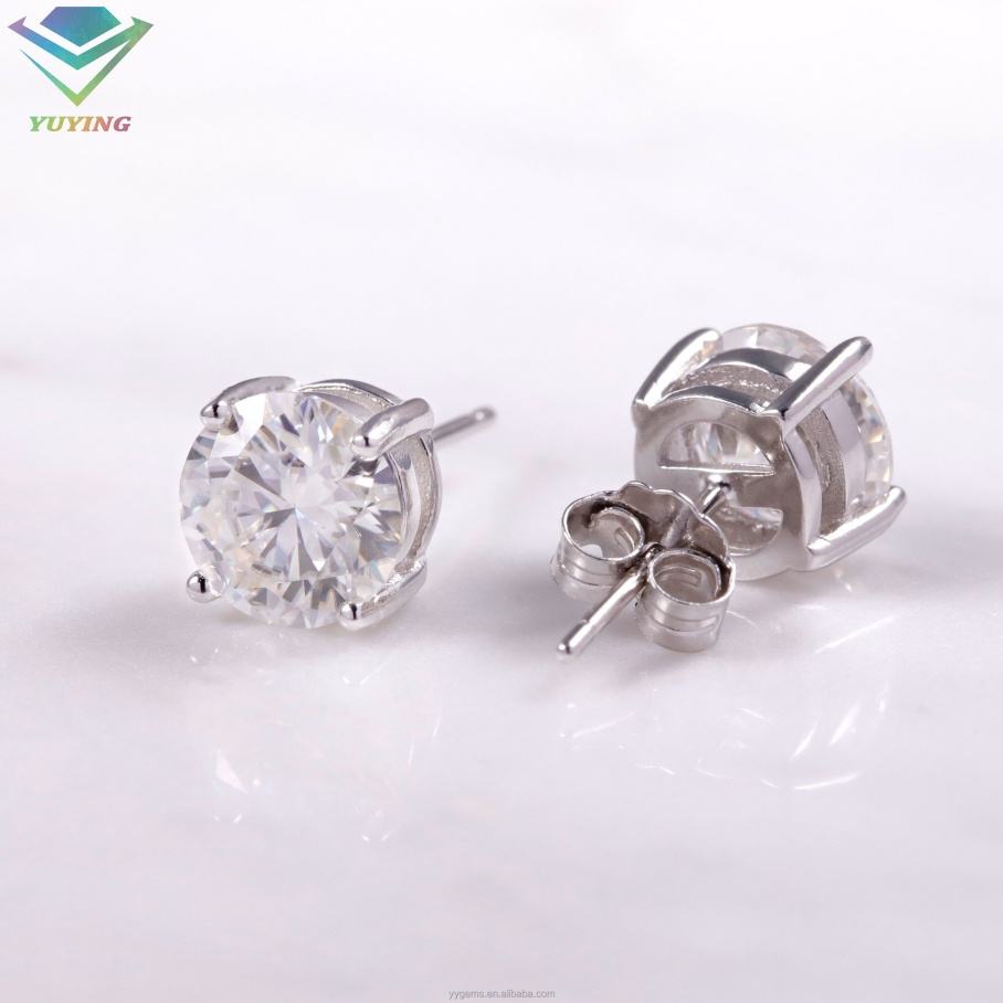 Nombre:Pendientes de mujer de joyería fina con moissanita redonda en oro blanco de 14 quilates