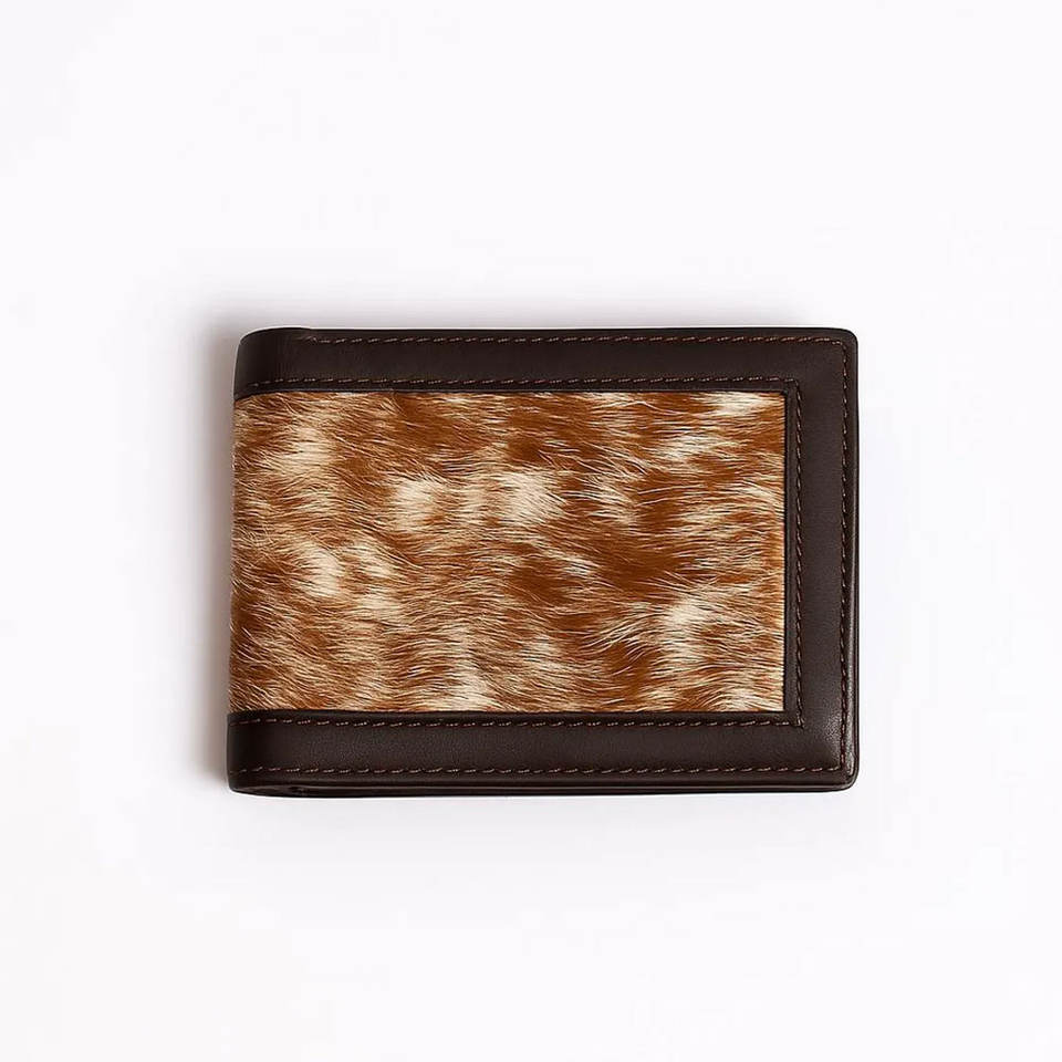 Cartera de cuero vacuno de alta gama para hombre, cartera de cuero con pelo, cartera delgada plegable hecha a mano, cuero genuino