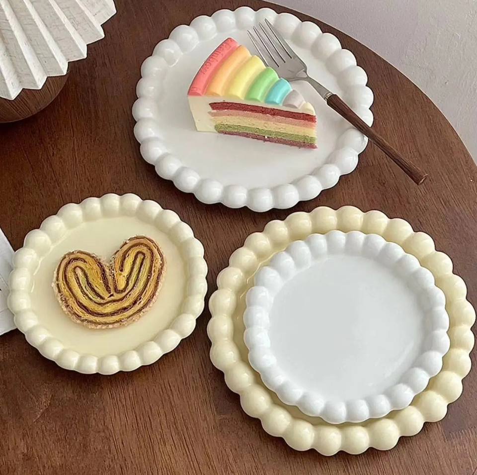 Plato de Estilo Crema de Alta Gama, Plato Creativo para Frutas y Pasta, Plato para Comida Occidental, Vajilla Francesa de Alta Gama, Plato para Desayuno, Plato para Pasta