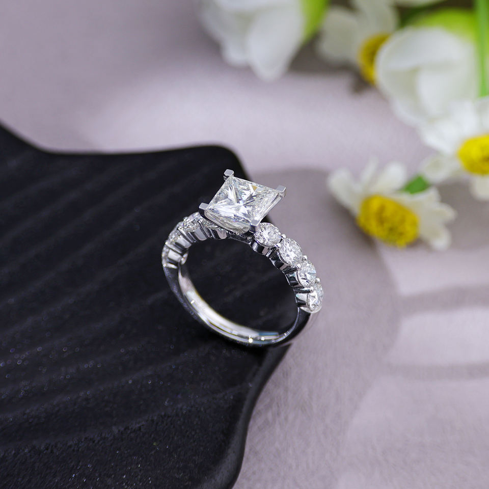 Anillo de Diamante Cultivado en Laboratorio con Certificación IGI, Corte Princesa de 2 Quilates, Personalizado de Alta Gama, Anillos de Oro Sólido de 14K para Compromiso Rápido, Anillo de Boda