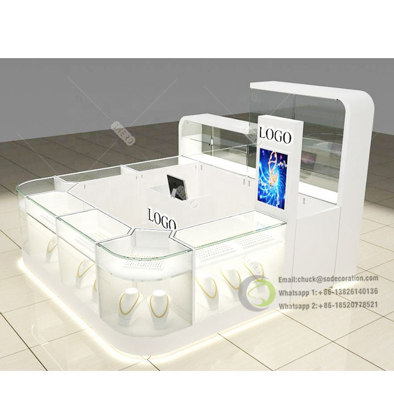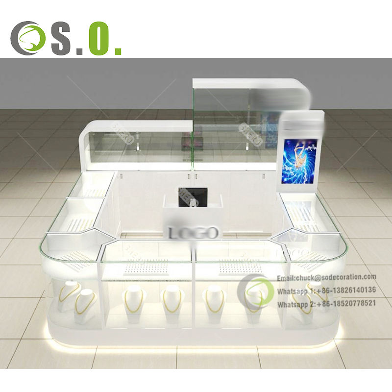 Quiosco de joyería de centro comercial personalizado de alta gama, vitrina de joyería para muebles de joyería