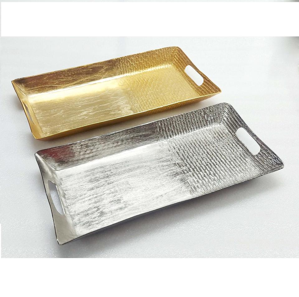 Bandeja de Platos de Estilo Moderno Personalizada de Alta Gama, Juego de Platos Redondos con Patrón de Relieve Chapado en Oro, Acabado Elegante, Plato para Servir en Bodas