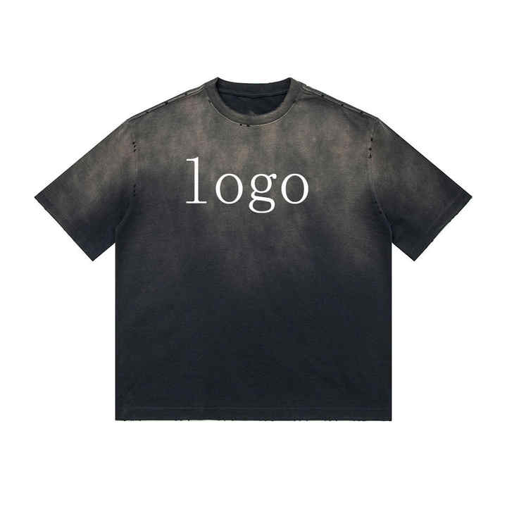Camiseta de Algodón Grueso Retro de Alta Gama Personalizada con Hombros Caídos, Camiseta Unisex con Efecto Desgastado por el Sol