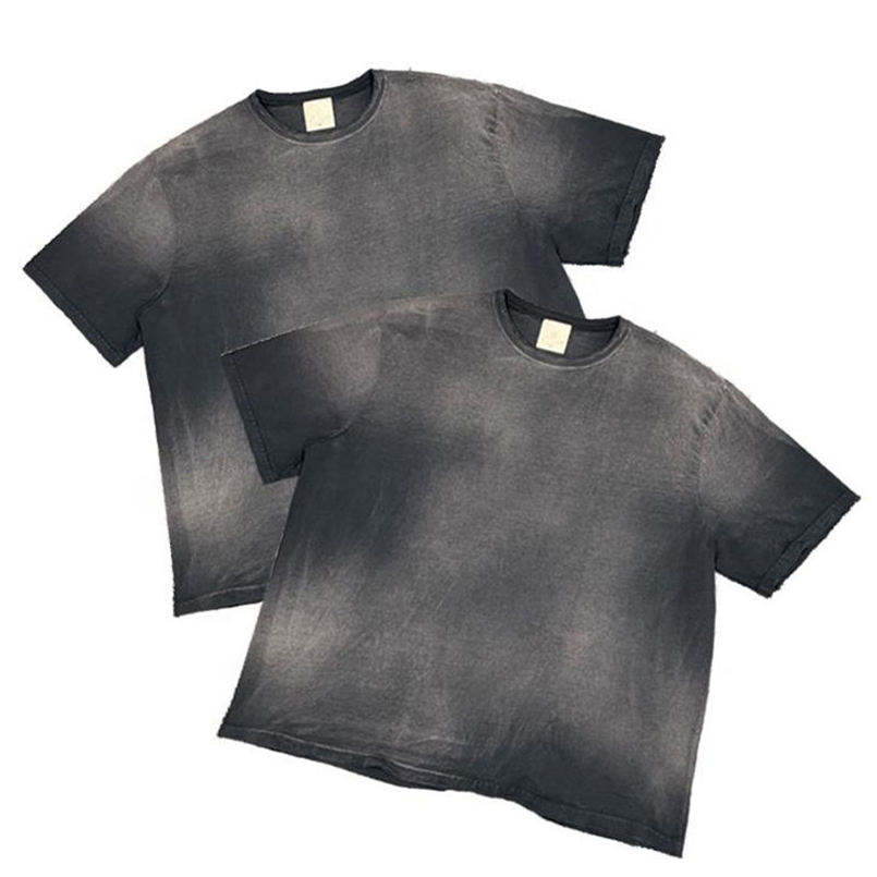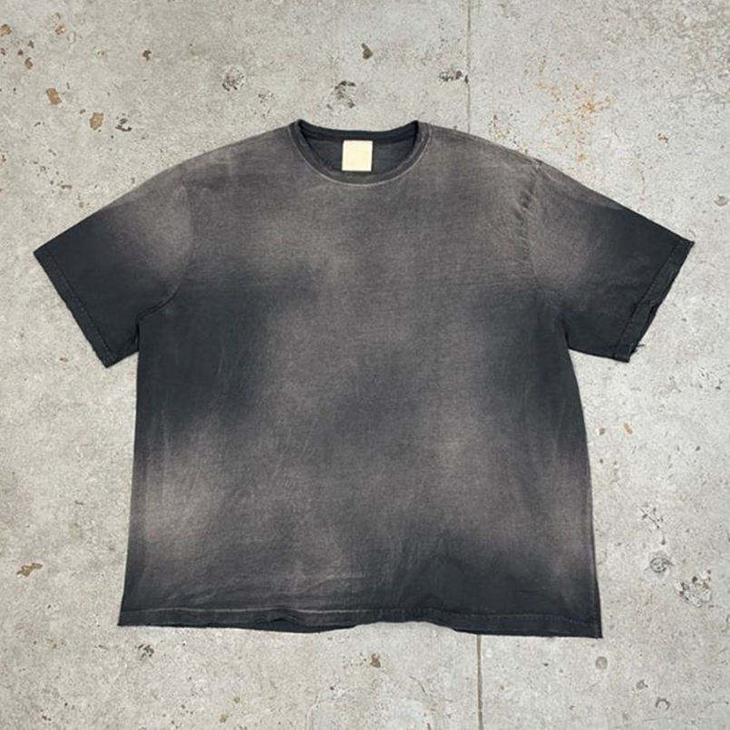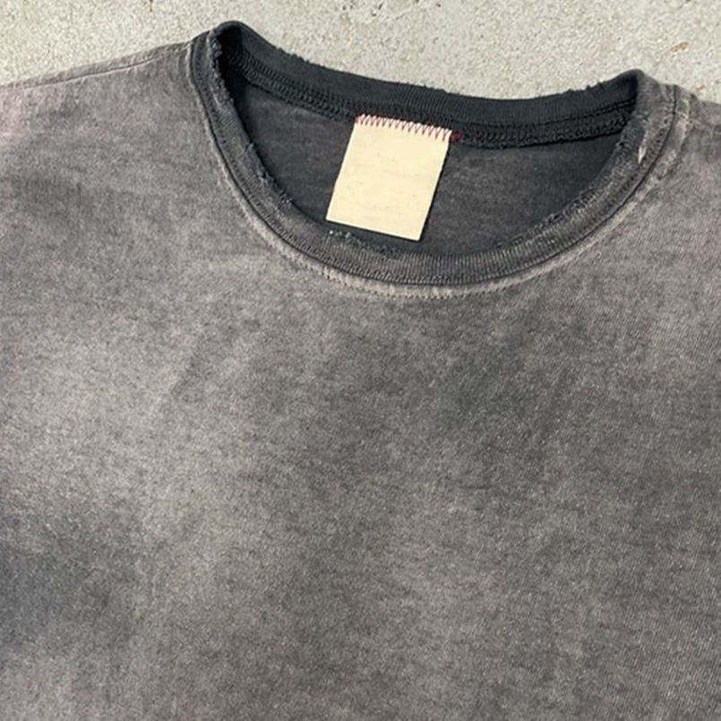 Camiseta de Algodón Grueso Retro de Alta Gama Personalizada con Hombros Caídos, Camiseta Unisex con Efecto Desgastado por el Sol