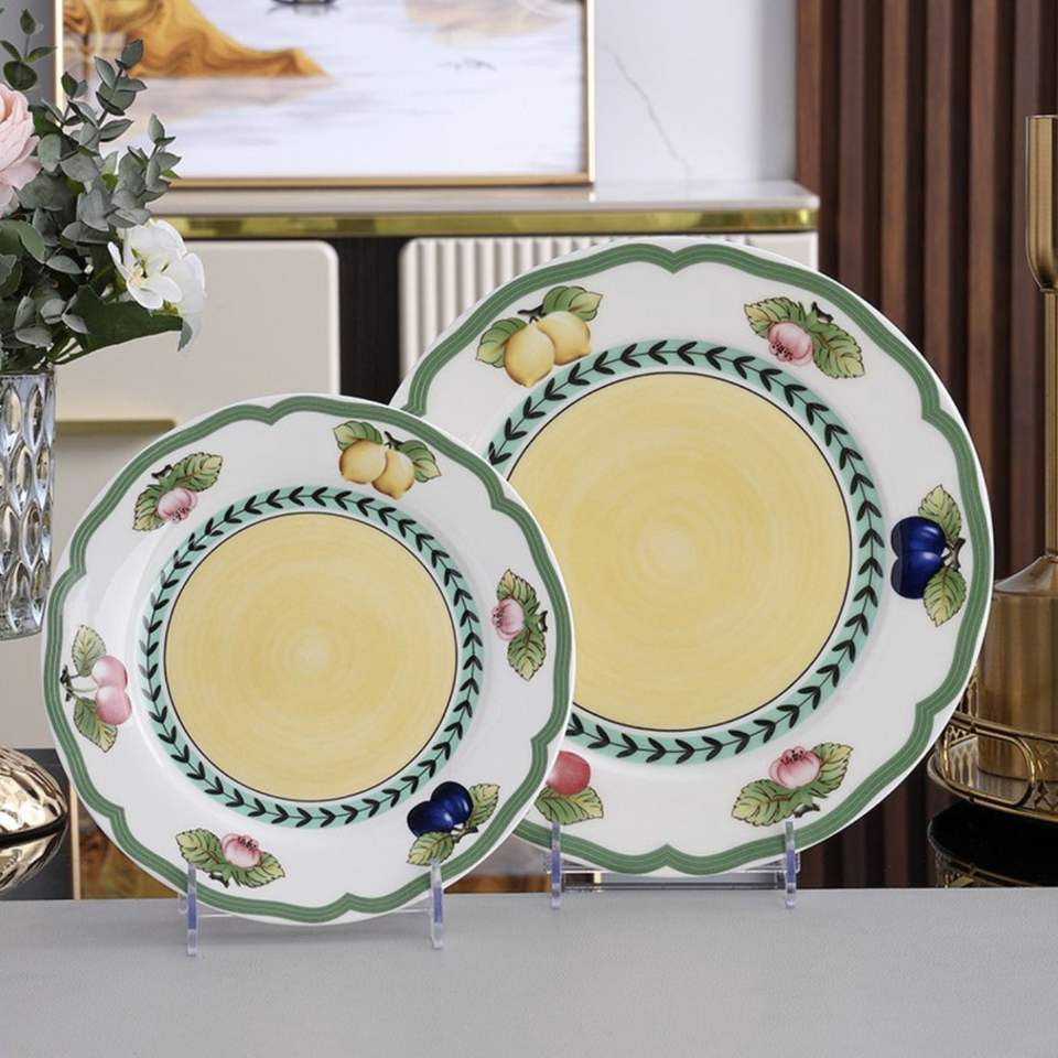 Vajilla de Porcelana Fina Ecológica de Alta Gama, Serie Frutas, Diseño Moderno y Lujoso, Plato para Bistec Estilo Occidental