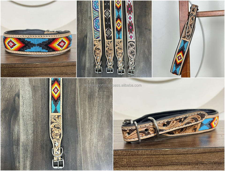 Nombre del producto:Collar de perro con cuentas de cuero mecanizada a mano