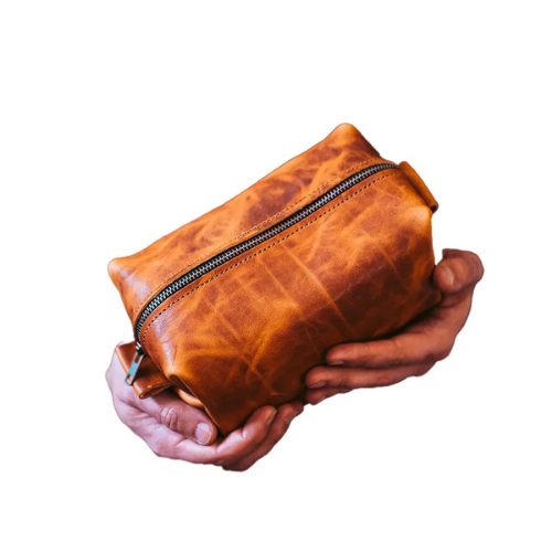 Bolsa de Maquillaje de Viaje de Cuero Genuino para Hombre de Alta Gama con Cierre de Cremallera, Gran Capacidad, Impermeable y Ecológica