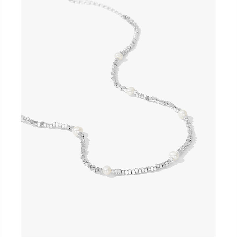 Collar de Gargantilla Fina de Alta Gama para Mujer, Lujo Ligero, Perla de Agua Dulce, Diseño de Nicho Famoso en Internet, Plata Desgastada