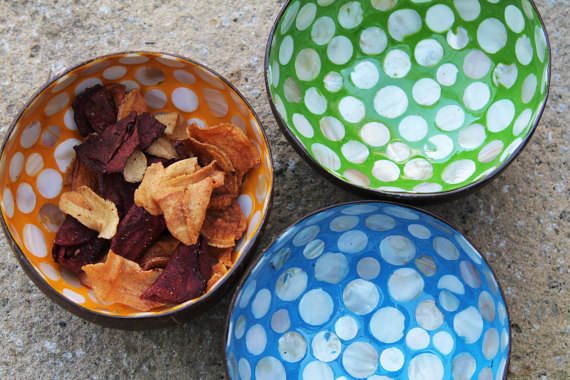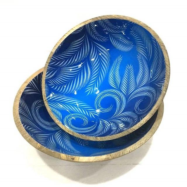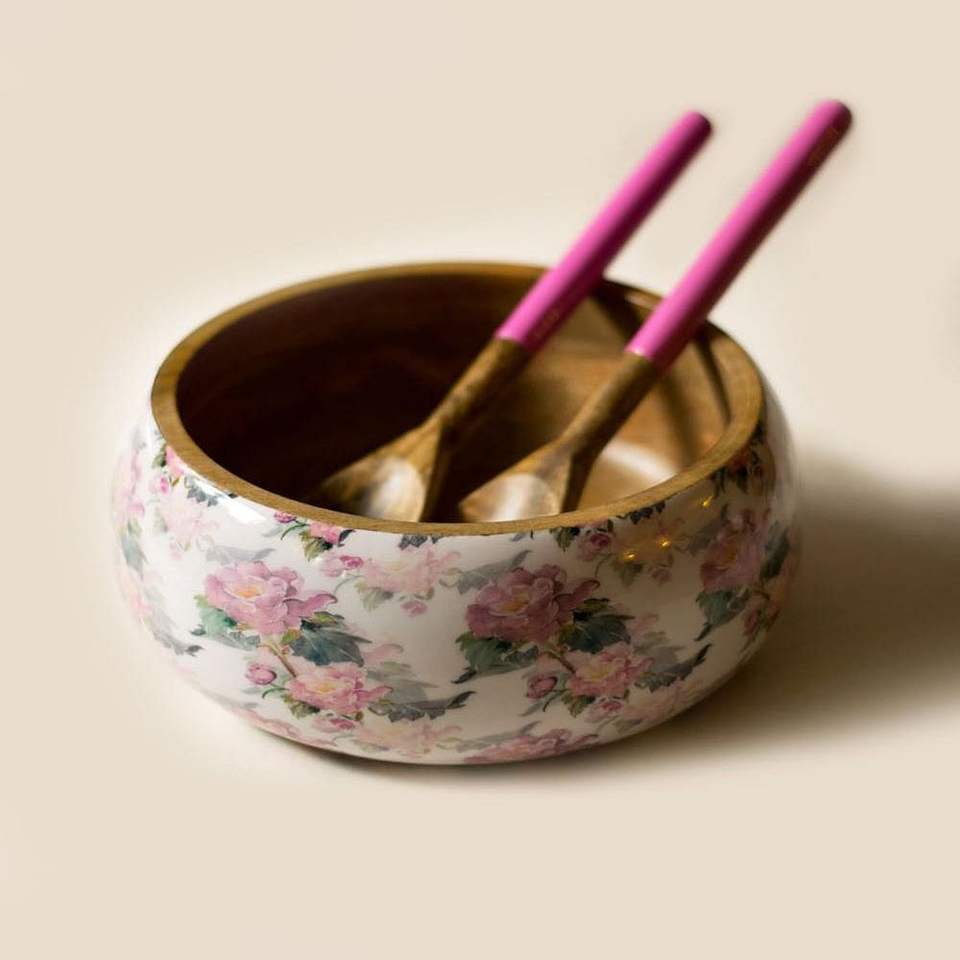 Ensaladera Redonda Grande de Madera Natural Hecha a Mano de Alta Gama con Estampado Decorativo de Esmalte para la Presentación de Alimentos Saludables