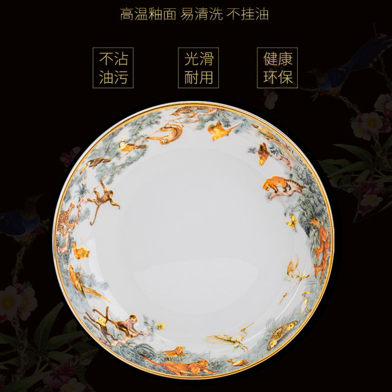 Juego de Platos y Tazones de Porcelana con Diseño de Tigre de la Selva, Estilo Americano, Cerámica para Uso en Hogar, Hotel o Restaurante, de Porcelana Fina