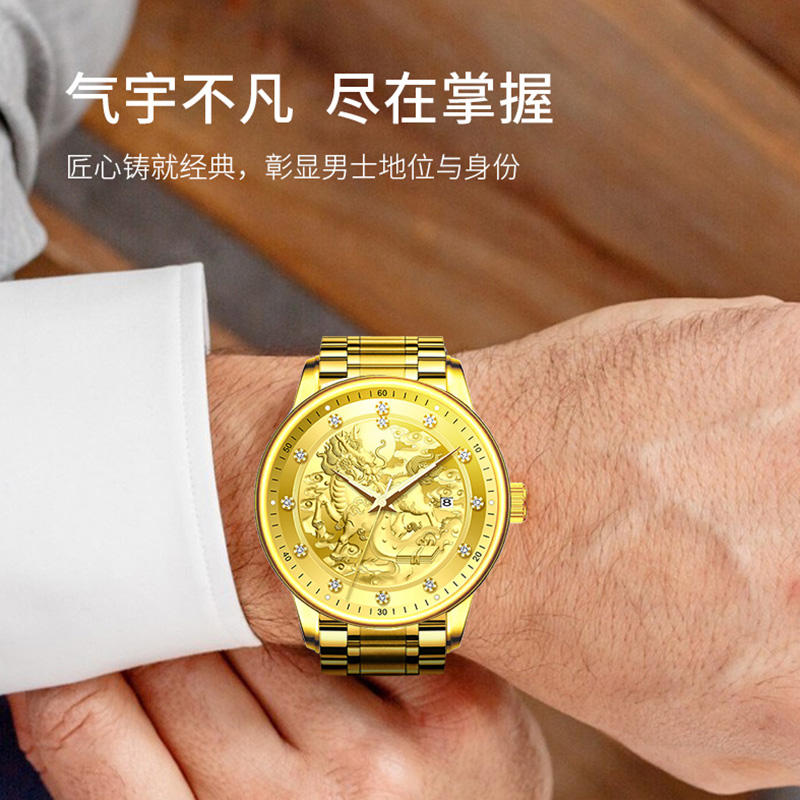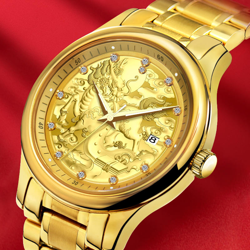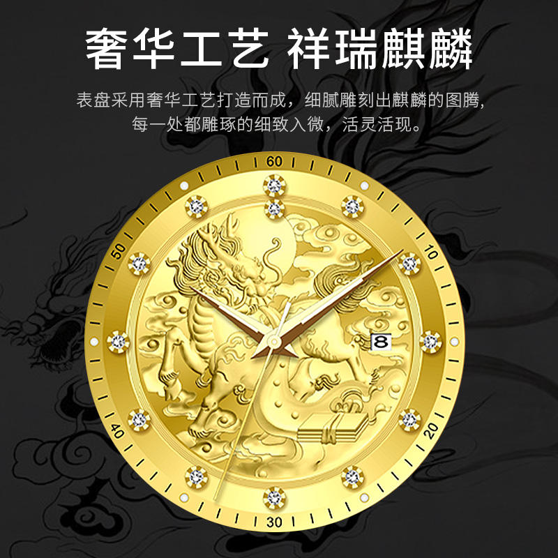 Reloj Mecánico Automático de Alta Gama para Hombre con Patrón Kylin, Reloj de Pulsera de Negocios de Acero Inoxidable 316L