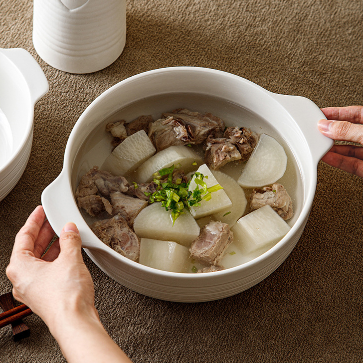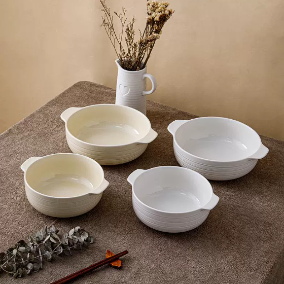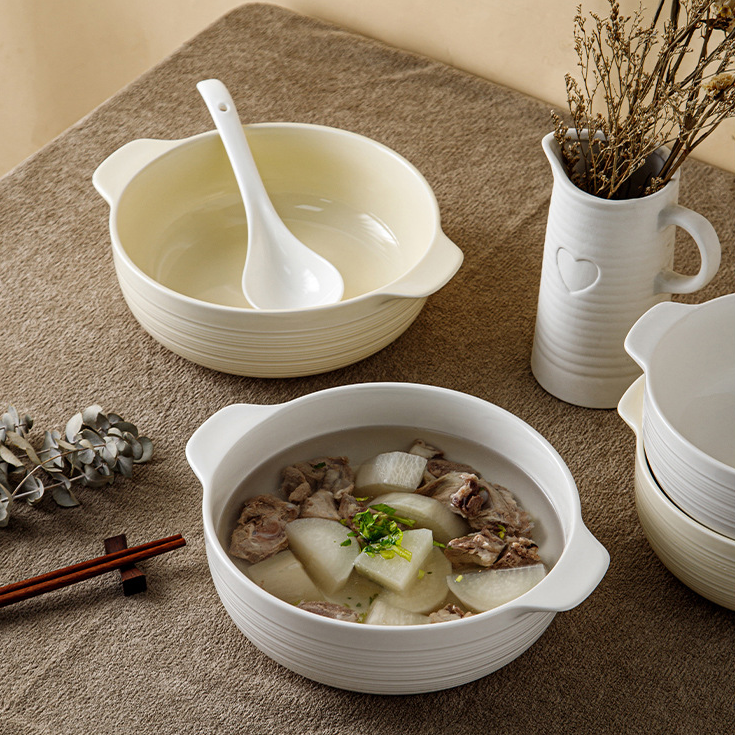 Tazones de Cerámica de Alta Gama, Gran Capacidad, Estilo Europeo, Ecológicos, Certificados BSCI/LFGB, Diseño de Sopa con Doble Asa, Nuevo