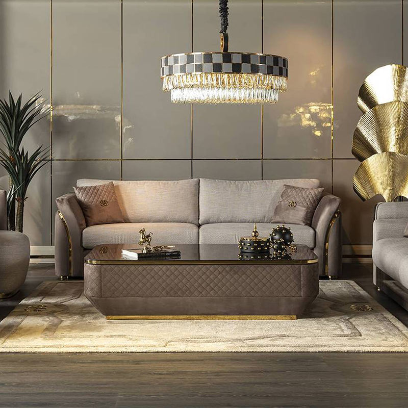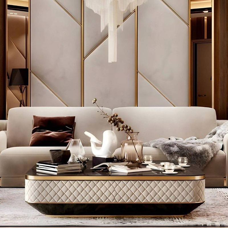 Mesa de centro personalizada de lujo de gama alta con tapa de mármol y la mejor tela de costura para muebles de sala de estar