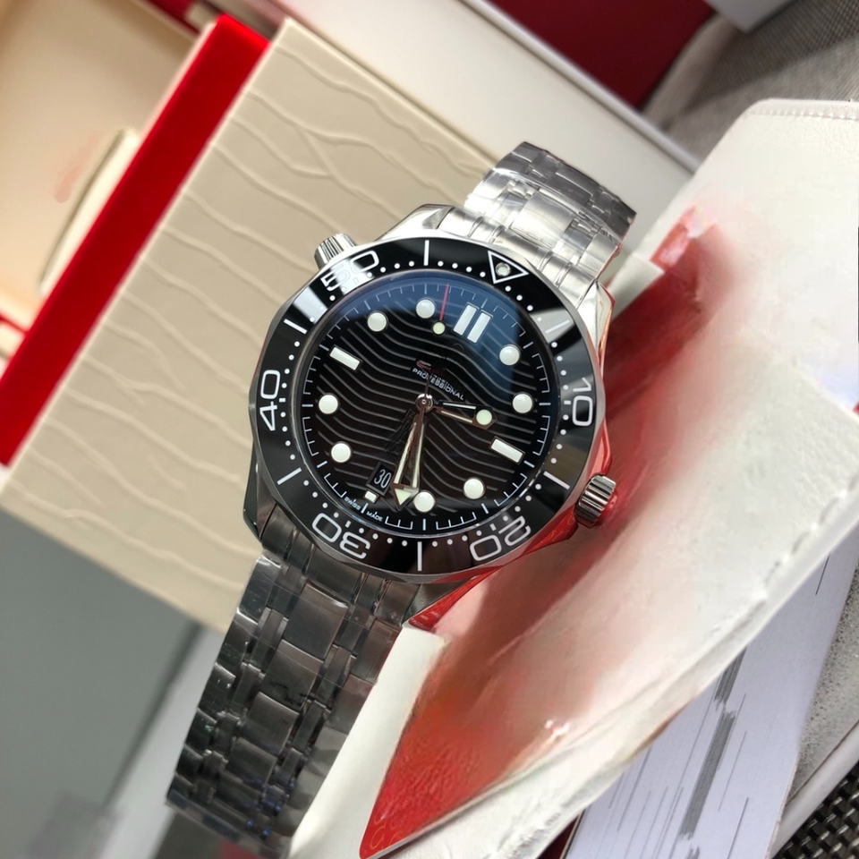 Relojes de Cuarzo Analógicos Estilo Buzo para Hombre con Esfera con Patrón de Ondas, Bisel Giratorio y Brazalete de Acero Inoxidable Omegaes
