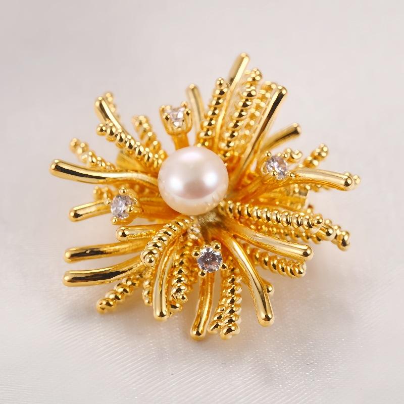 Broche de Lujo de Alta Gama para Mujer, Nuevo Diseño de Flor de Fuegos Artificiales Dorados, Broche de Moda de Agua Dulce de Zhuji