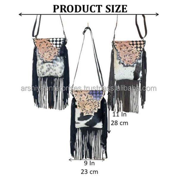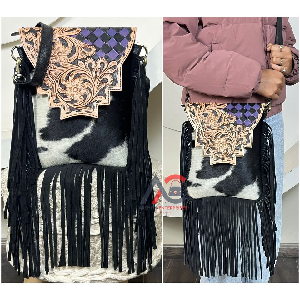 Product name:Hand Tooled Leather Fringe Checkered Crossbody Bag
