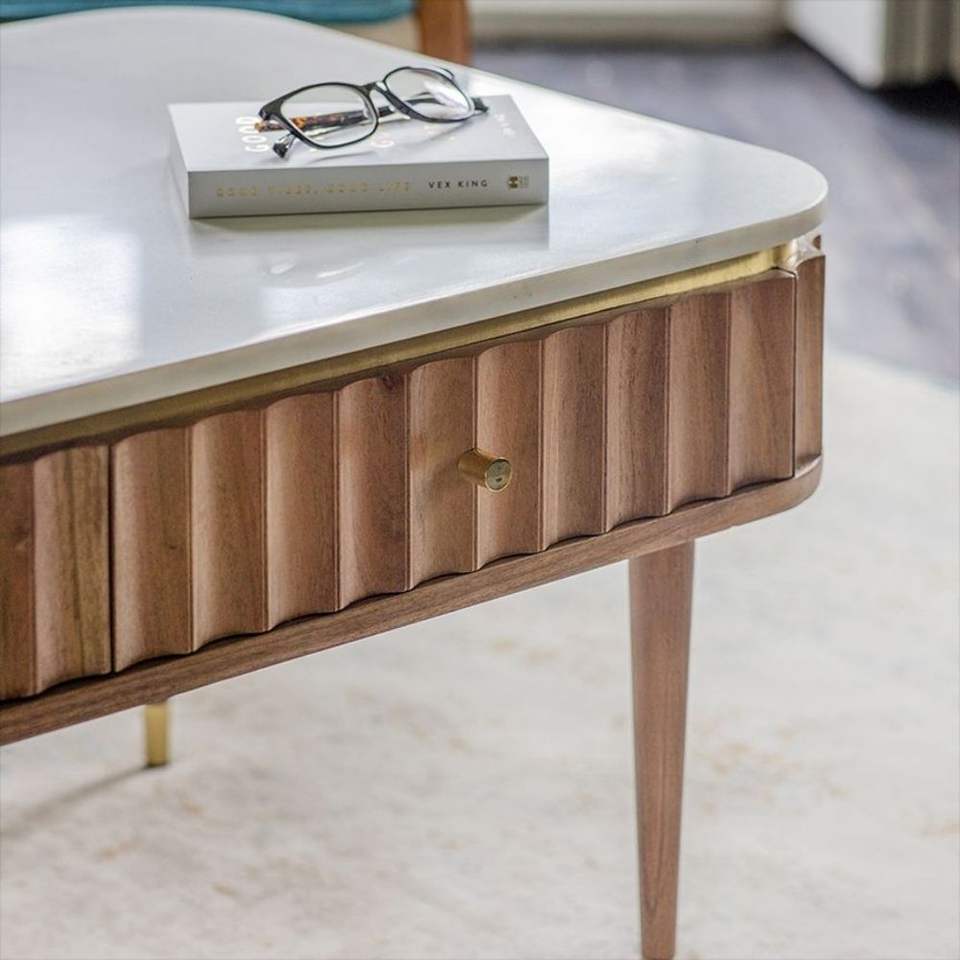 Mesa de Centro de Lujo para Sala de Estar con Estructura de Madera de Acacia Duradera y Tapa de Mármol de Alta Gama