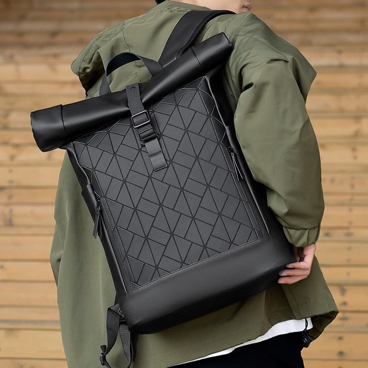 Mochila para Portátil de Alta Gama para Hombre, Diseño Enrollable Funcional de Doble Compartimento, Elegante, para Trabajo, de Poliéster e Impermeable