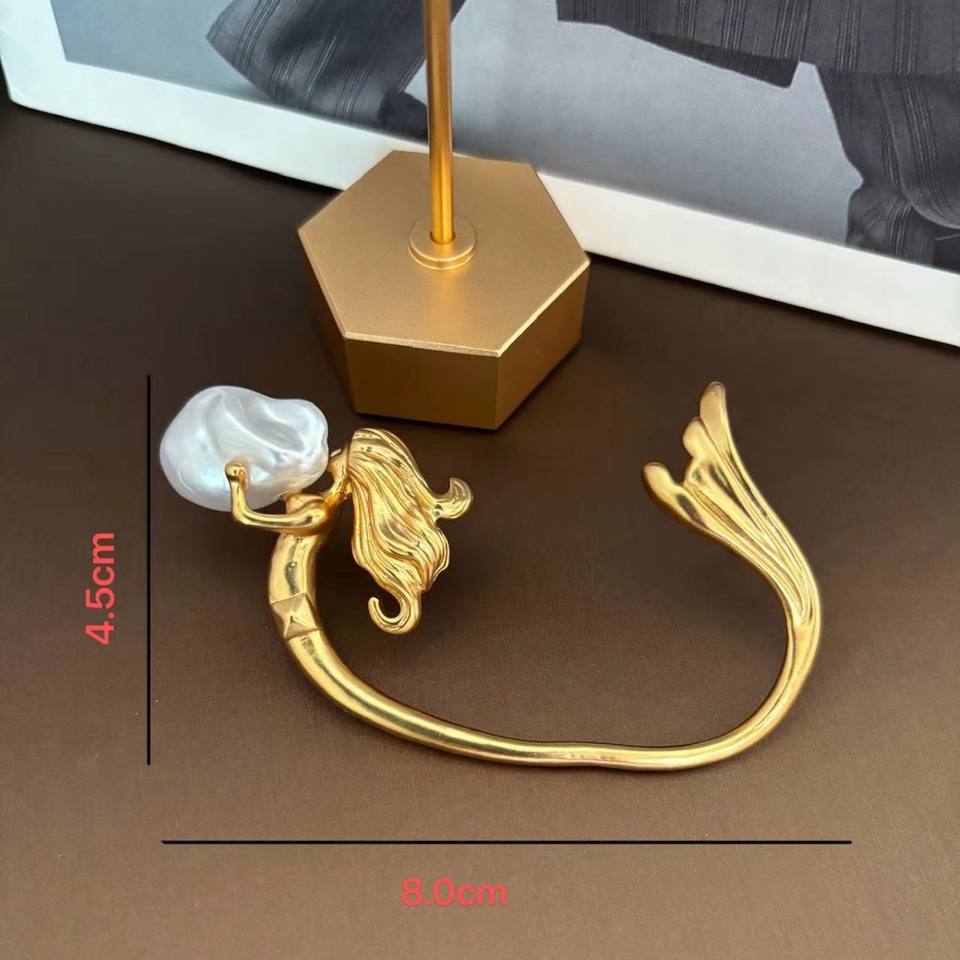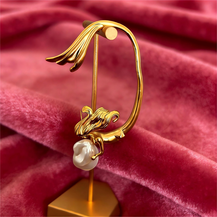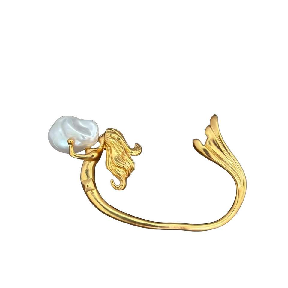 Pendiente de Oreja Individual de Alta Gama Estilo Sirena con Perlas Barrocas y Baño de Oro de 18K