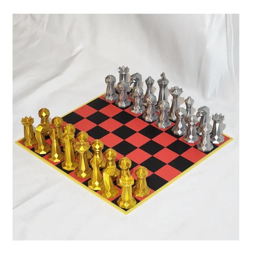 Juego de Ajedrez Geométrico Metálico de Alta Gama, Piezas Decorativas Impresas en 3D con Diseño Low-Poly, Tablero Incluido, Regalo Corporativo Único, Decoración para el Hogar