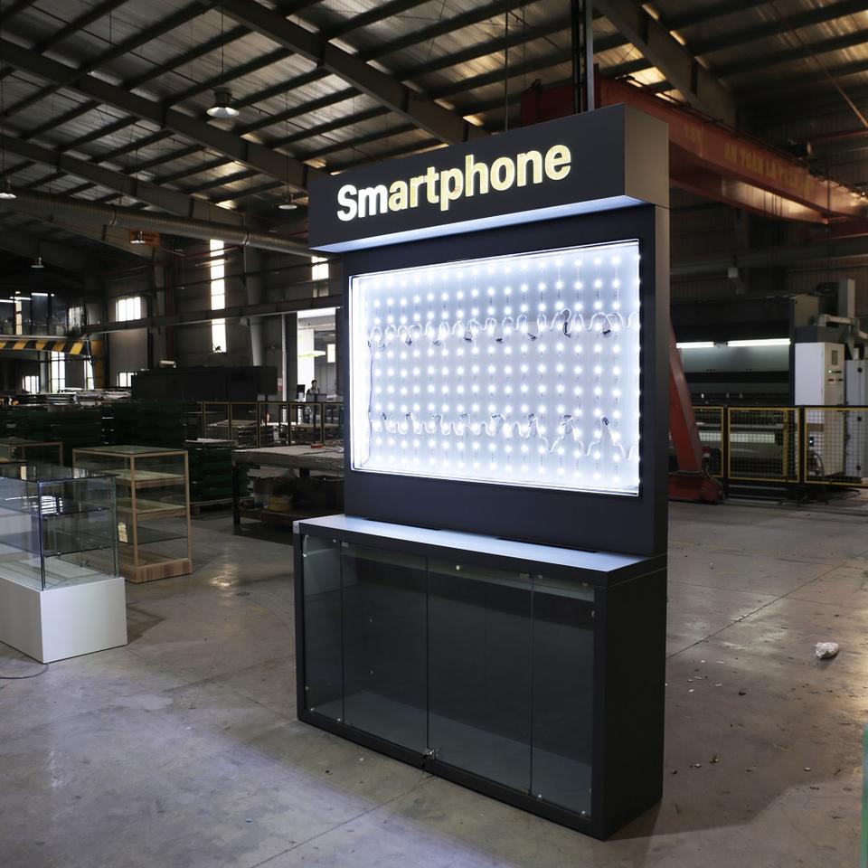 Exhibidor Metálico Moderno de Alta Gama para Minoristas con Luz LED, Resistente al Agua, Respaldo Sólido, Reciclable y en Niveles, ADong Vietnam OEM