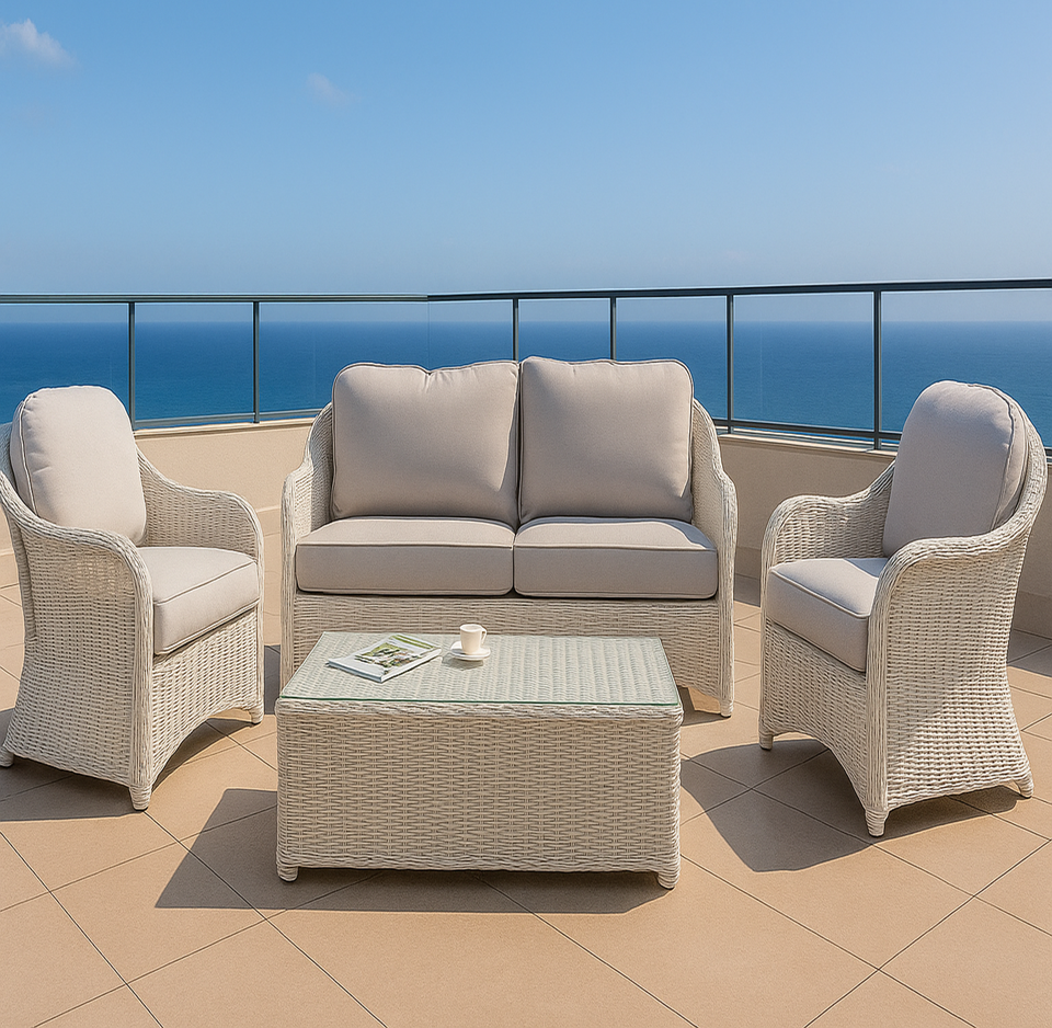 Conjunto de Sofás de Ratán Modernos de Alta Gama para Exteriores con Cojines Impermeables para Patios y Jardines de Hoteles de Lujo