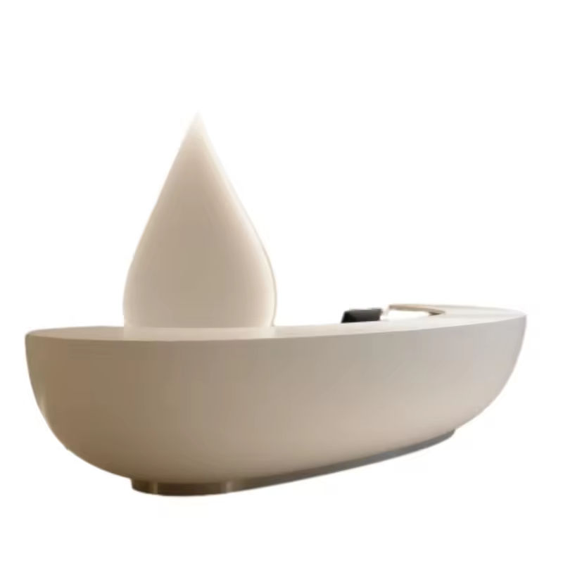 Mostrador de Recepción Moderno de Alta Gama en Color Rosa con Letrero Retroiluminado Inspirado en Flores para Áreas de Moda, Belleza y Comercio Minorista