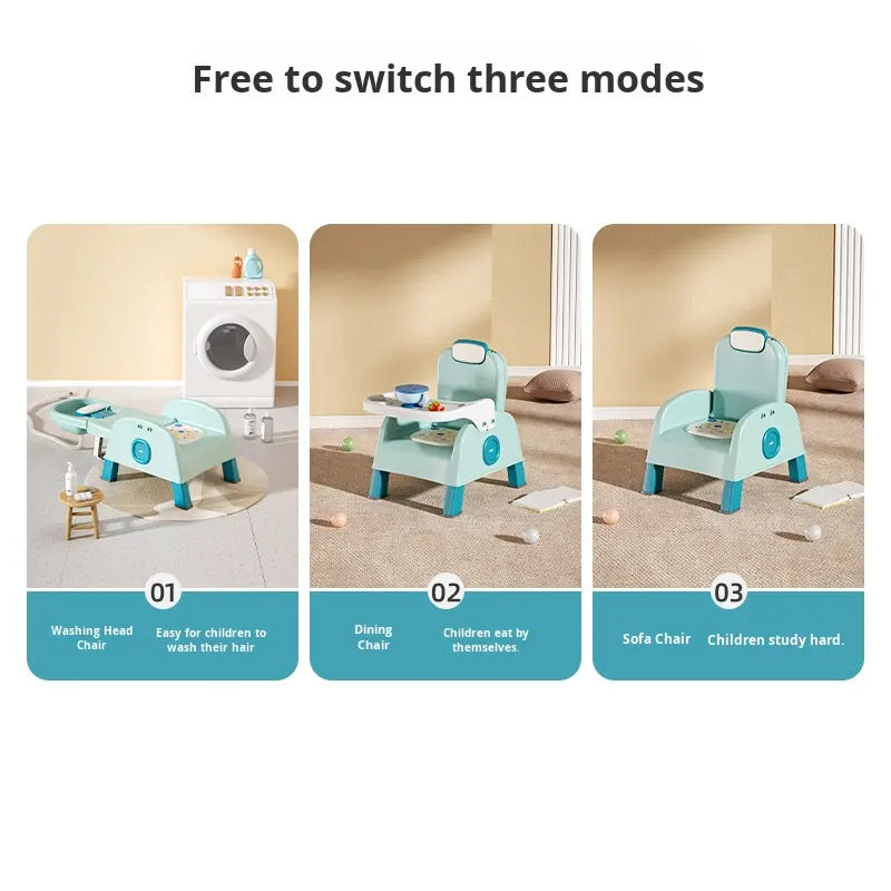 Juego de taburetes de respaldo de sofá de bebé multifuncional de gama alta, silla de champú plegable antideslizante con soporte para productos de baño de comedor en casa