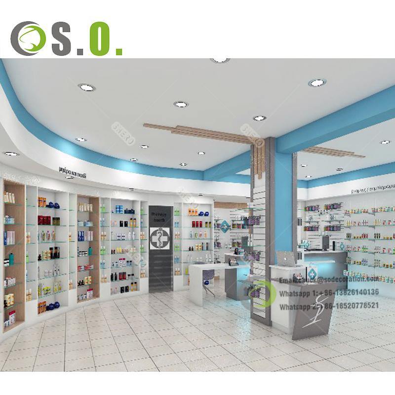 Uso:Contador de la tienda médica, estantes de madera de la farmacia