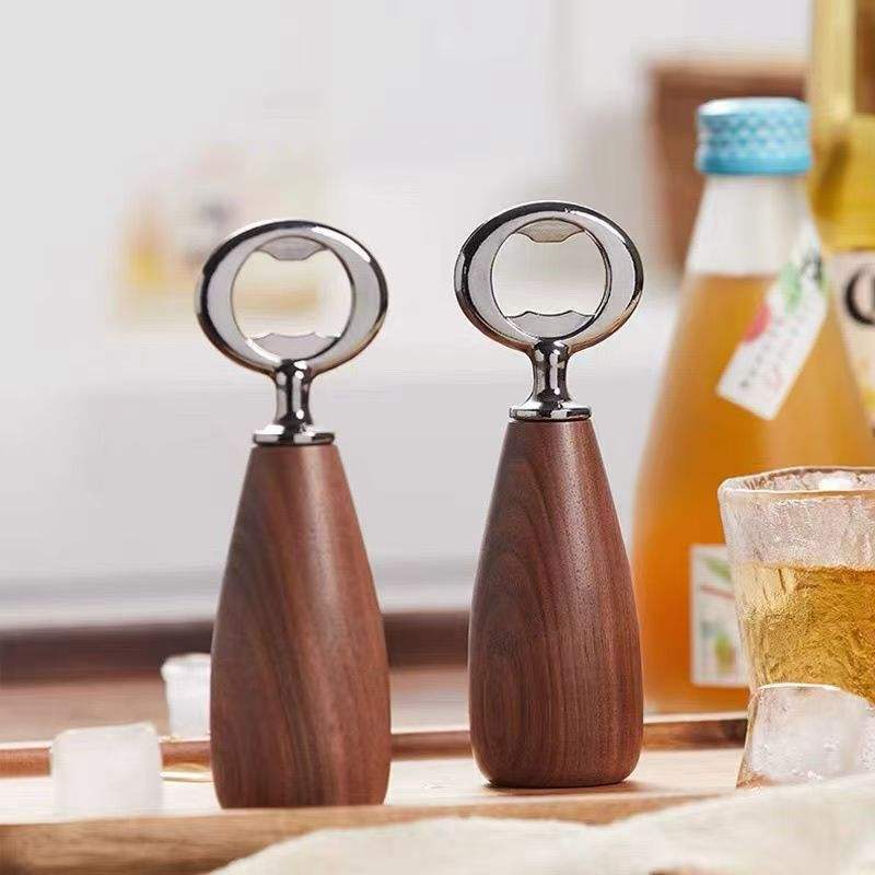 Abridor de tapa de nogal negro portátil de gama alta Abridor de botellas de cerveza y vino de bebidas caseras creativas hecho de silicona duradera