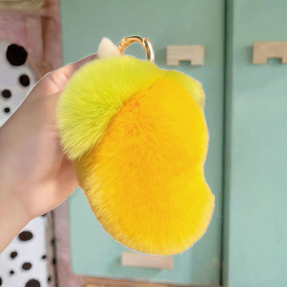 Llavero de Peluche de Mango con Piel de Conejo de Alta Gama, Lindo y Suave, Colgante de Metal y Plástico, Llavero de Fruta Kawaii, Regalo