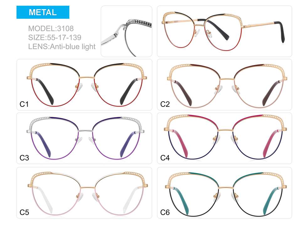 Gafas de Computadora con Protección Anti Luz Azul, Diseño Retro Clásico de Alta Gama, Montura Metálica Ligera con Tallado Hueco para Mujer