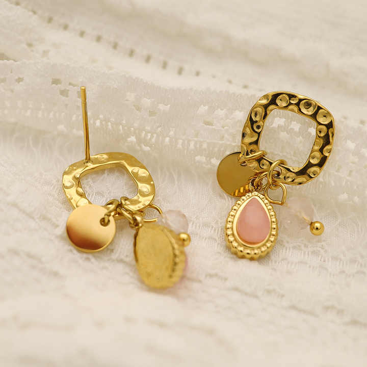 Pendientes de aro retro de gama alta que tocan metal texturizado con colgantes de piedra natural Joyería de acero inoxidable de moda