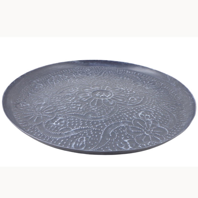 Plato de metal redondo de gama alta, platos para servir alimentos de lavado gris para restaurante, hogar, decorativo, cantidad personalizada, hecho a mano