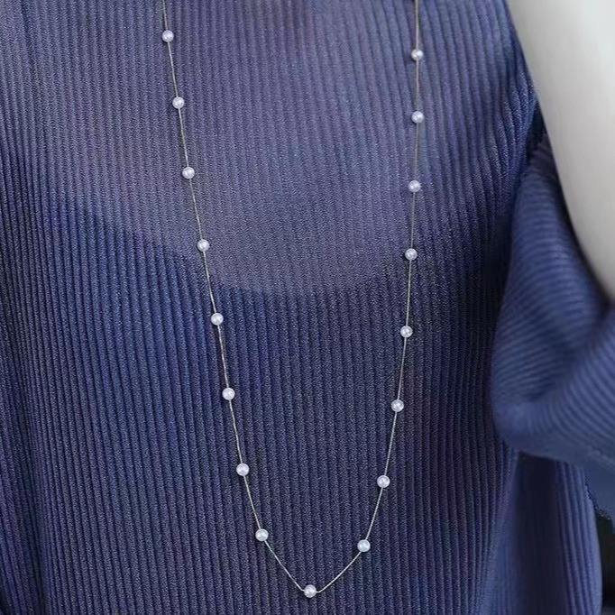 Collar de Perlas de Alta Gama, Plata S925 Chapada en Oro, Cadena Larga para Suéter, Perla Natural de Agua Dulce, Estilo Cielo Estrellado Impecable