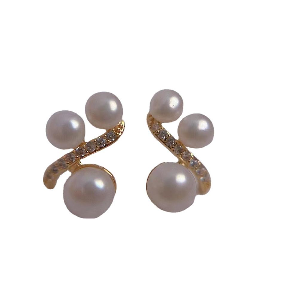 Pendientes de Perlas de Agua Dulce con Forma de Corazón Geométrico Simple de Alta Gama, Accesorio de Moda Elegante al por Mayor
