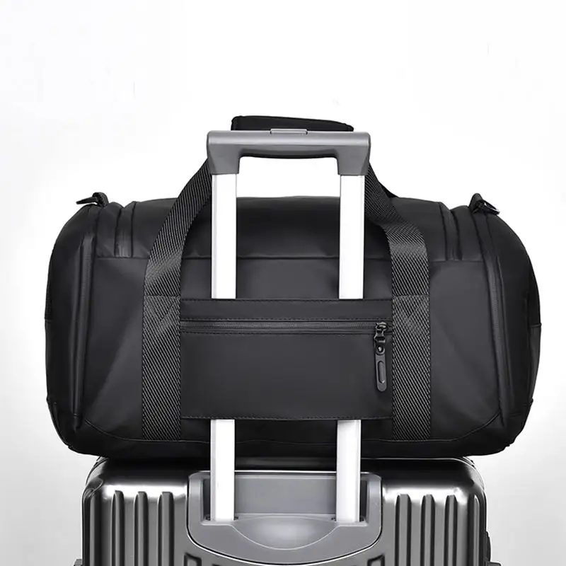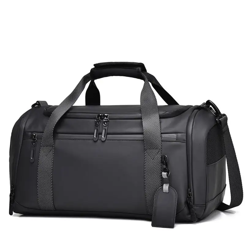 High End Sports Weekend Bag Large Capacity Matte Black Duffel with Reinforced Webbing and Smooth Dual Sealed Zippers